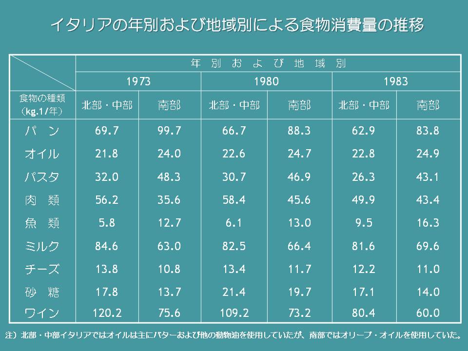 一方、気候が温暖な南部が中心とする地域では、地中海型食生活を習慣としています。