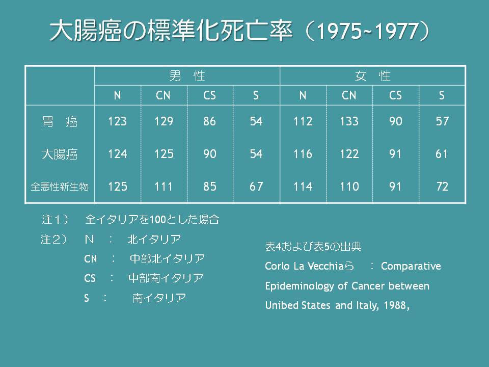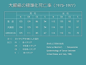 1970年代、この3つの地域でさまざまながんの死亡率の平均値を比べると、多くのがんで死亡率が最も低かったのは南部であるという結果がでました。