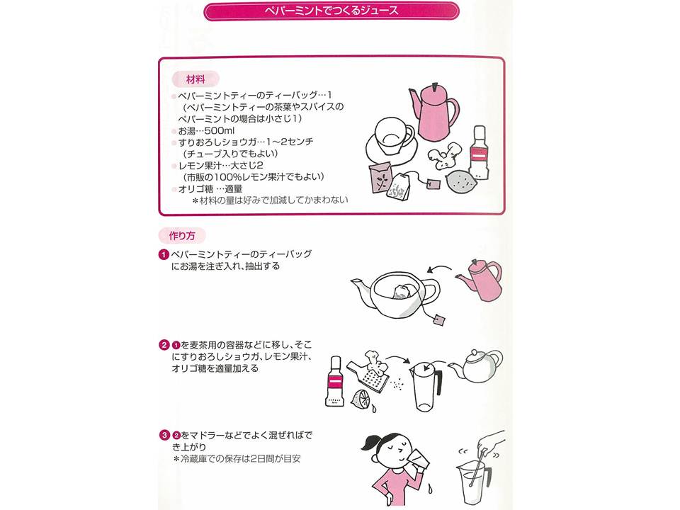 ペパーミントやしょうがには、体内にたまった老廃物を排出する強力な「毒出し」効果があります。「便秘が治った」「太りにくくなった」など、絶賛されたドリンクのレシピをご紹介しておきましょう。